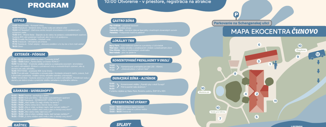 Dňa 26.4.2025 sa bude konať v Ekocentre Čunovo celodenná akcia (10-18:00) ku príležitosti dňa Zeme s názvom “ Voda naše Bohatstvo“